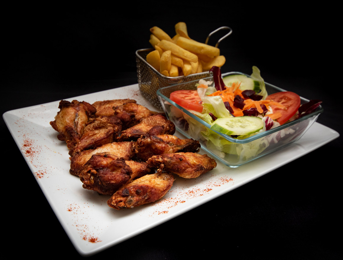 | 400g d'ailes de poulet accompagné de frites et salade |